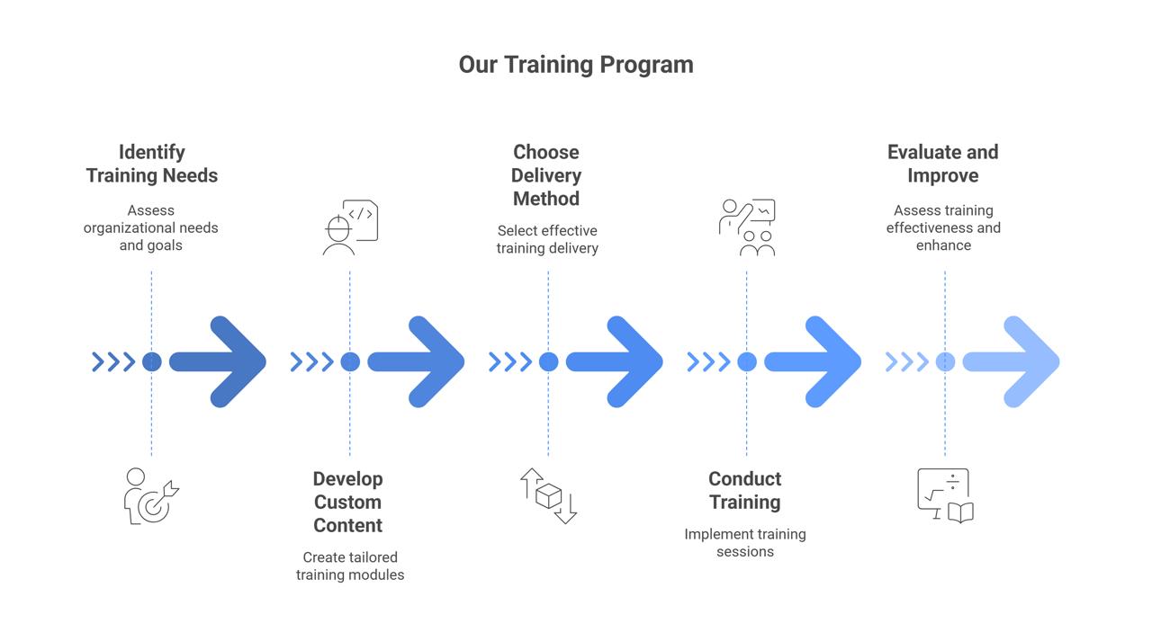 Our comprehensive training packages include expert-led sessions, practical exercises, training materials, case studies, implementation tools, certificates of completion, and post-training support to ensure successful application of learned concepts in your organization.